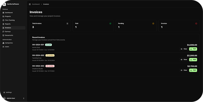 W jednym miejscu widzisz projekty, raporty, faktury i umowy.